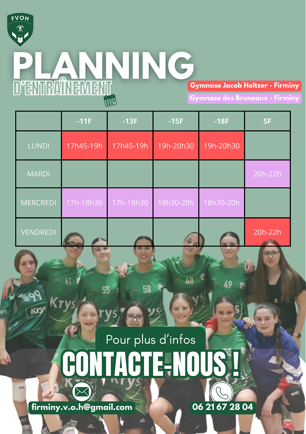 Que tu sois débutante ou joueuse confirmée, nous t'attendons pour intégrer nos équipes et partager notre passion dans une ambiance conviviale et soudée.